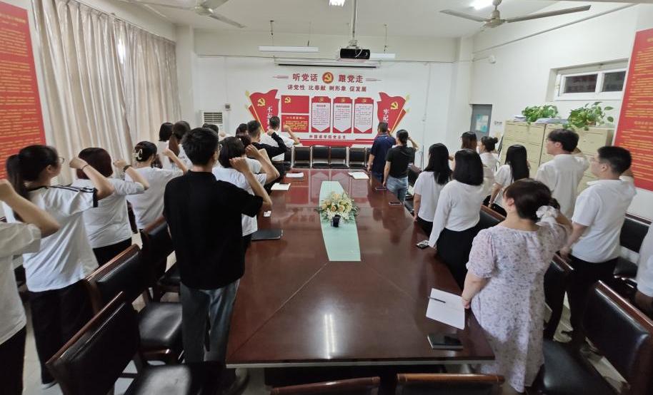 6月24日下午,外国语学院党总支举行庆“七一”新党员入党宣誓仪式。外国语学院党总支委员、辅导员、党员代表和新发展党员参加,宣誓仪式由党总支书记吕健主持。