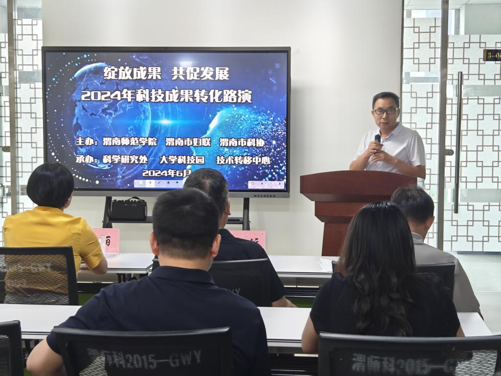 6月26日下午,学校在逸夫实训楼311室举办“绽放成果 共促发展”2024年科技成果转化路演活动。此次活动由best365中国官方网站、渭南市妇联和渭南市科协主办,best365科学研究处和大学科技园承办,渭南市妇联副主席马丽,渭南市科协科普部部长马西运莅临指导交流。活动由大学科技园总经理何泰伯主持。