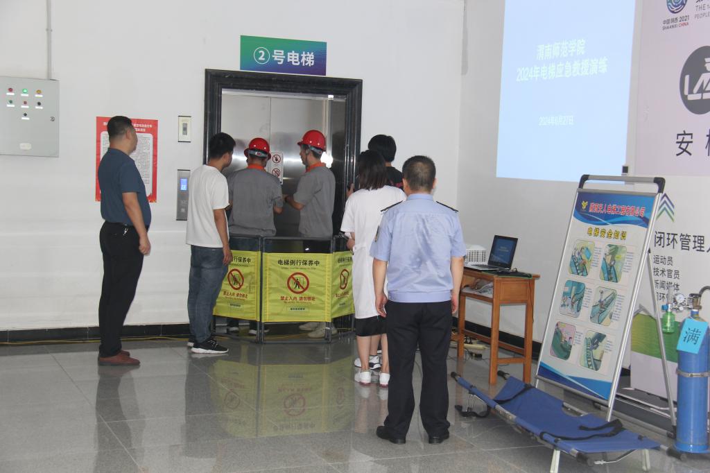 本次活动得到临渭区市场监督管理局特设股、临渭区市场监管局站南所、陕西天人电梯工程有限公司的大力支持和配合,学校资产经营公司、保卫处、附属医院等部门负责人及相关工作人员、电梯安全总监、安全管理员、各楼宇管理员等60余人参加了演练活动。(通讯员 张磊 审核人 王争辉)