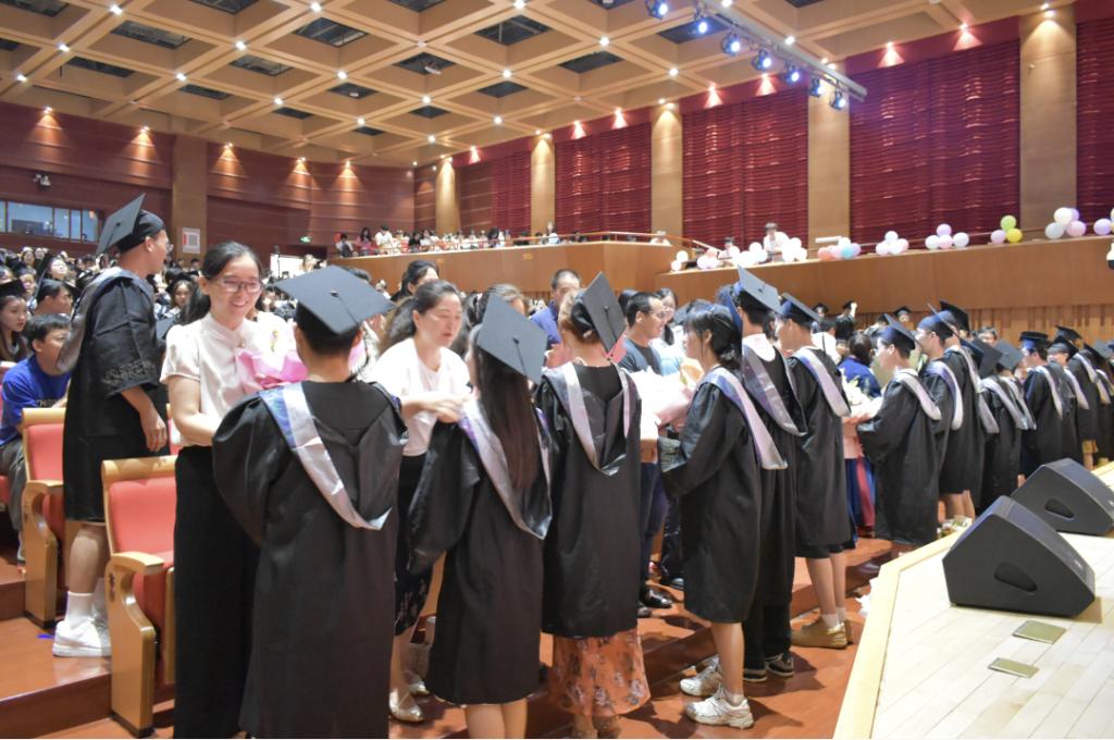 副校长常青林与学院领导班子为到场全体毕业生颁授学位证书、正冠拨穗,并送上殷殷嘱托与衷心祝福,毕业生们与台上老师深情拥抱致谢。最后全体毕业生进行庄严宣誓,表达了要不断追求知识,提升自我,回报母校和社会的决心。(通讯员 晏小雪 审核人 武江波)