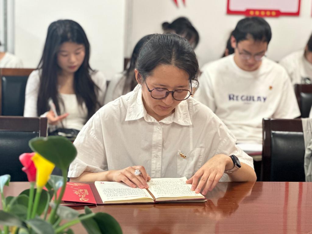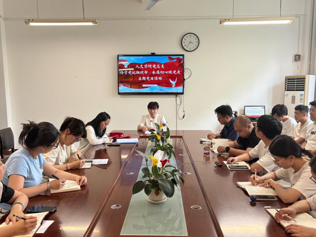为献礼“七一”建党节, 6月28日下午,人文学院党总支在博识楼1318会议室召开“恪守党纪担使命 永葆初心跟党走”主题党日活动,学院处科级干部、学生党支部书记、支部委员、辅导员以及学生第一党支部全体学生党员参加活动,活动由该院党务秘书乔晓琼主持。