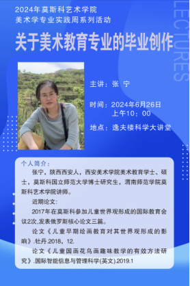 6月26日上午,莫斯科艺术学院美术学专业夏季小学期系列活动之专题讲座“关于美术教育专业的毕业创作”在逸夫楼科学讲堂进行。主讲人为美术学专业教师张宁,讲座由美术学专业负责人石洁主持,2021级、2022级美术学专业学生参加此次专题讲座。