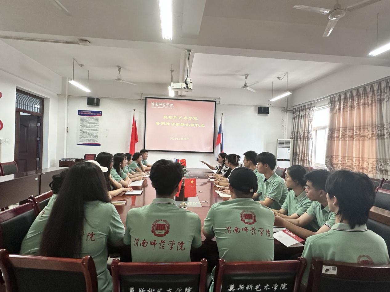随后,莫斯科艺术学院院级实践团在逸夫楼会议室,举行2024年暑期大学生“三下乡”社会实践安全教育暨出征动员大会,学院党总支副书记叶晓燕、团委书记段菲、团委副书记师艺园及全体实践队员参加。