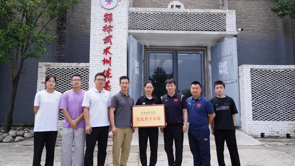 7 月 11 日,体育学院与渭南市锦标武术院于少华山训练基地举行了实践教学基地签约与授牌仪式。参与此次仪式的人员包括体育学院党总支副书记闵雄飞、副院长蔡龙,渭南市武术协会主席张永彪,锦标武术院教练员李瑾以及相关负责人。