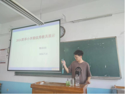 在夏季小学期开展了师范生教学技能提升、学生课程设计、实习实训和学科竞赛等活动,实践成果丰富。针对师范生大一展出了粉笔字、钢笔字和毛笔字的优秀作品,优秀学员上台对文字的来源和书写注意事项进行讲解;大二师范生展演了优秀教学设计、优秀微课,展示了优秀物理教学教具;大三师范生展演了优秀教学片段。针对理工科学生,部分学生展演了优秀科技作品,并对科技作品的功能和性能进行了详细地介绍;部分学生展示了优秀课程设计和实训优秀成果。