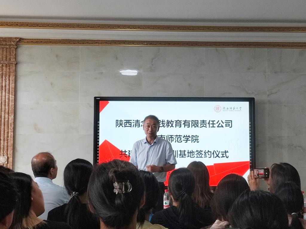 签约仪式上,陕西清念实践教育负责人陕西师范大学郭文斌教授谈到了由于陕西种植简单并且经济效益好,能更好的将特殊学校劳动教育与自主销售模式相结合,也为我们介绍了清念农产品站中的花卉区、水果园、蔬菜区、养殖、手工、机械区域等。他表示将为师范生配备优秀的指导教师,提供多样化的实践项目,共同培养适应新时代教育需求的卓越教师。