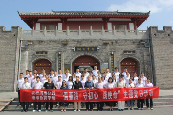 7月18日上午,继续教育学院直属党支部组织全体党员干部、农行渭南分行2024年党务工作者培训班学员赴潼关杨震廉政博物馆开展“倡廉洁 守初心 践使命”主题党日活动。