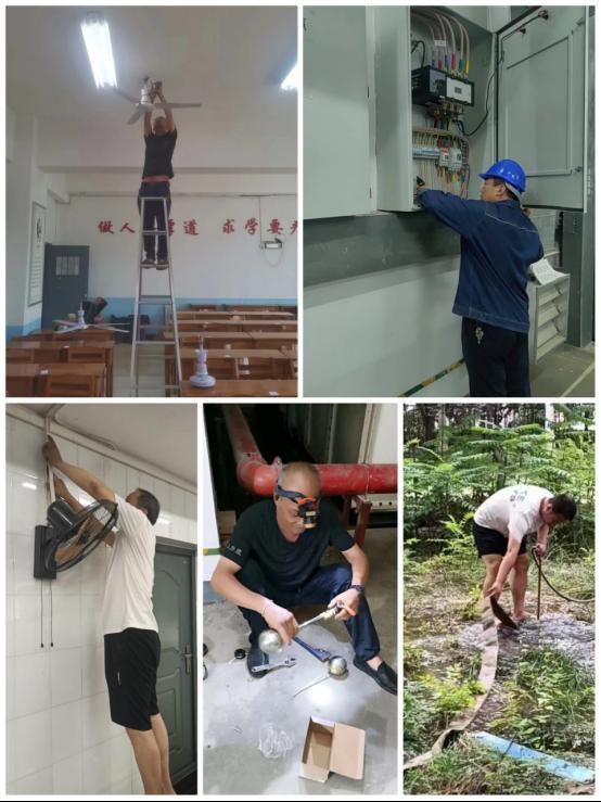 暑期高温酷热,极端天气较多,对水电动力保障是一种考验,能源动力科人员坚持每日巡检,严格落实24小时值班制度,确保不因停水、停电影响校园生活。维修师傅们穿梭在校园的各个角落,他们爬上爬下,检修着水电设施,保障着学校的正常运转。他们的工作服早已被汗水浸湿,但他们的眼神中始终充满着专注和认真。