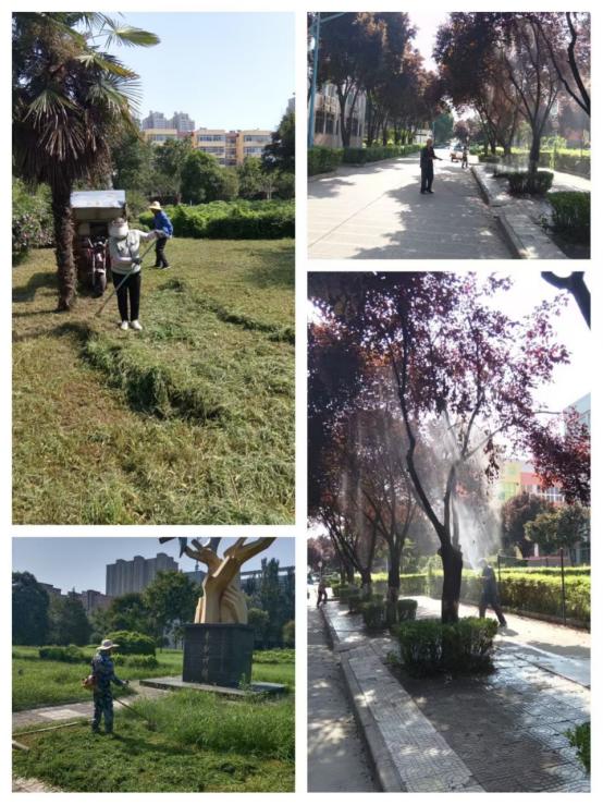 炎炎烈日,保洁绿化工人坚持户外劳作,做好夏季苗木防暑、浇水、除草、打药、修剪枝叶、更换品种等养护,他们头戴草帽,手持工具,在烈日下修剪着枝叶,为校园增添一抹抹绿色的清凉。他们的皮肤被晒得黝黑,汗水顺着脸颊不停地流淌,但他们的笑容却如同夏日里绽放的花朵,灿烂而动人。