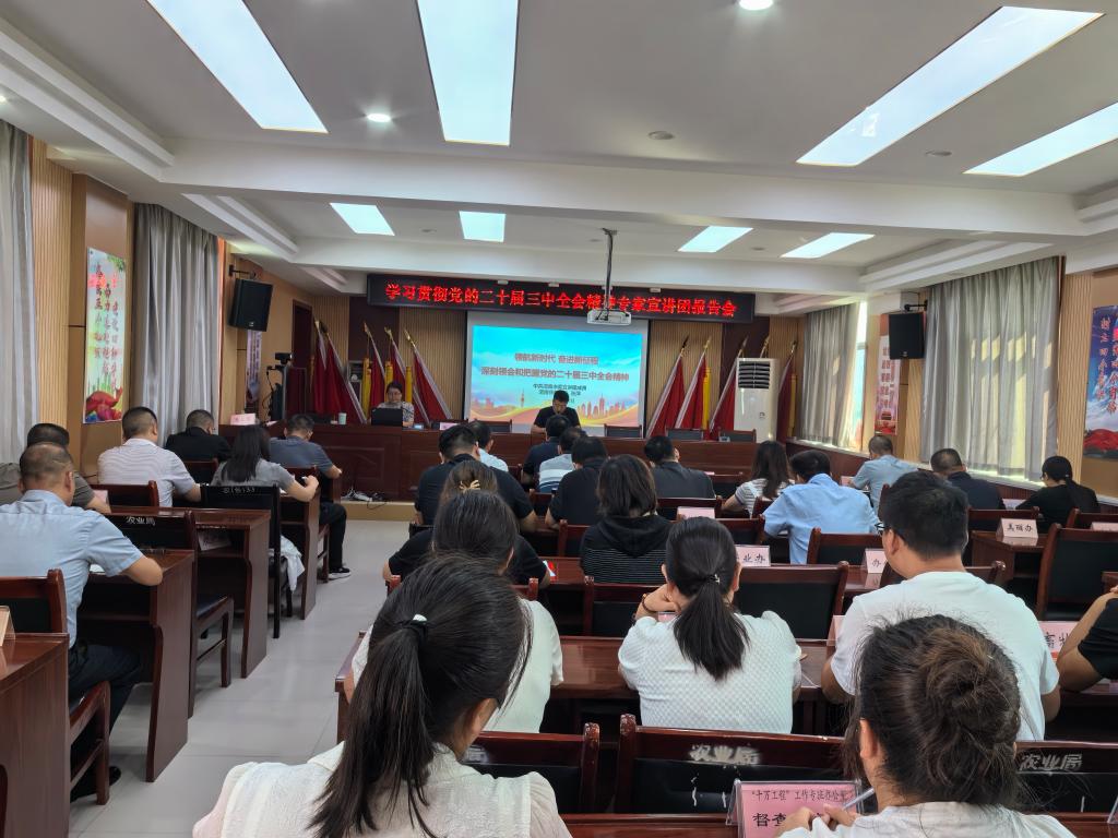 8月22日,张萍赴华州区农业农村局宣讲党的二十届三中全会精神。报告会上,张萍以《领航新时代 奋进新征程——深刻领会和把握党的二十届三中全会精神》为题,对党的二十届三中全会的概况、主要成果、重要意义等作了一一解读,并通过“七个聚焦”打开《中国共产党第二十届中央委员会第三次全体会议公报》,深刻剖析新时代面对的挑战与机遇,将大会的内容与历次三中全会进行了对比与说明,强调本次会议的延续性和创造性,用发展的眼光去看“四个坚持”到“六个坚持”的演变。