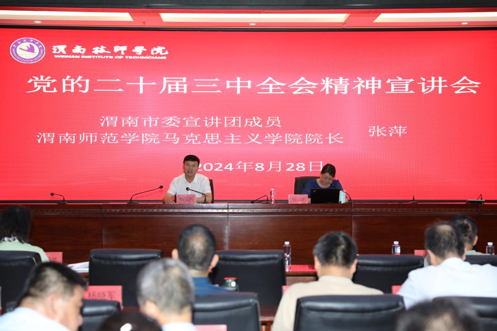 马克思主义学院院长张萍教授是党的二十届三中全会精神中共渭南市委宣讲团成员、陕西省总工会宣讲团成员。自8月22日以来,张萍教授已经先后应邀在渭南各地宣讲党的二十届三中全会精神4次。