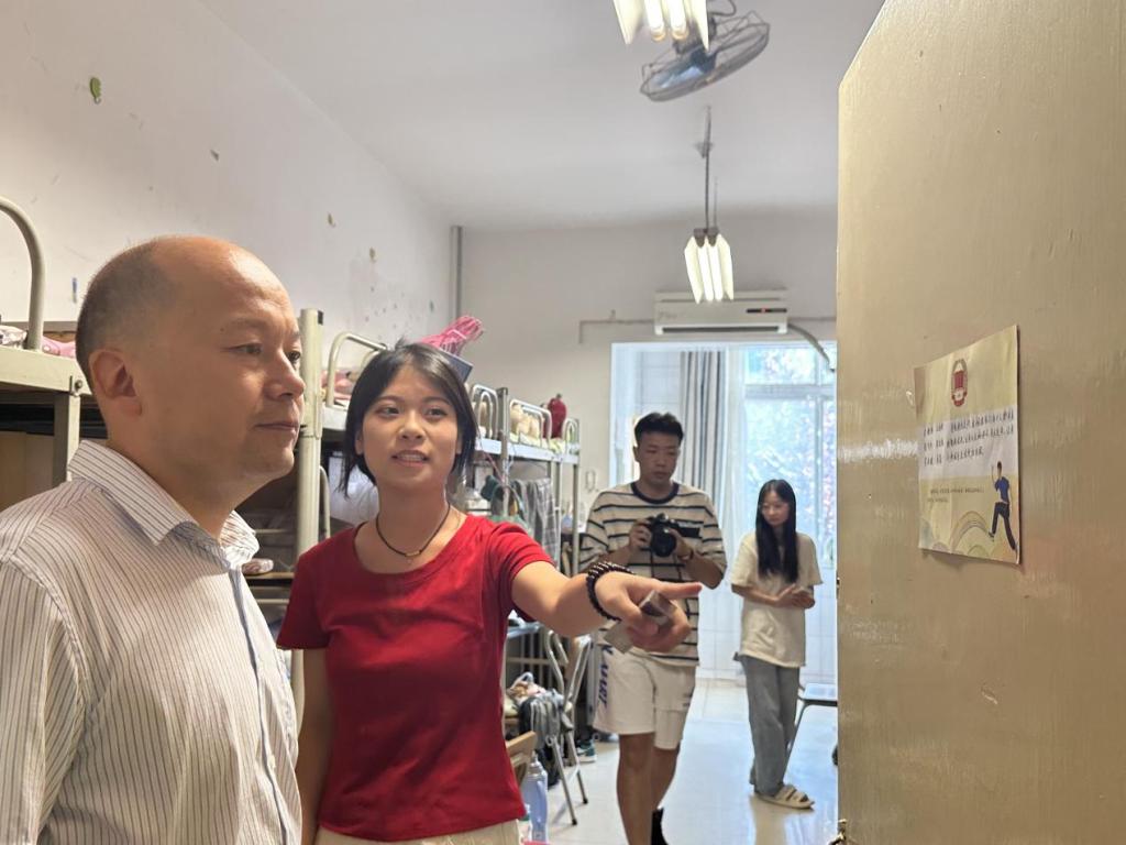 曹强随后对学生的电力使用、水资源利用以及消防安全状况进行了细致地检查,并针对现场发现的问题,立即与宿舍管理人员进行了沟通,以确保学生们能够享有舒适的居住环境。