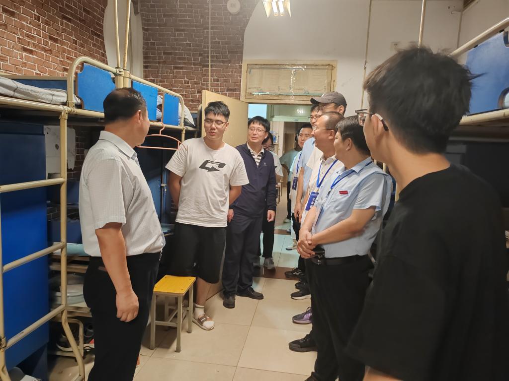 田超一行还对新生宿舍进行了设施安全检查工作。经排查,新生宿舍整体情况良好。