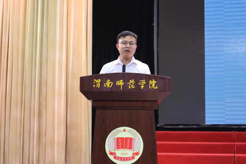 赵小鹏教授作为教师代表发言。赵小鹏在发言中表达了对新生的欢迎与期望,并以“天天奋斗,天天快乐”的学校精神和“严谨求实,笃学敏思”的院训激励学生们勇于挑战自我,勇登学术高峰。最后,他希望在这个大家庭中,每位同学都能开心快乐,学有所成。
