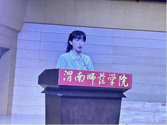 李西彩院长向教育学211班姚佳怡同学颁发了2023-2024年度“陕西省大学生自强之星”荣誉证书。在随后的发言中,姚佳怡同学分享了自己的学习心得与成长体会,深情感谢了学校、学院以及老师们对自己的悉心培养,鼓励新生珍惜大学时光,努力学习。