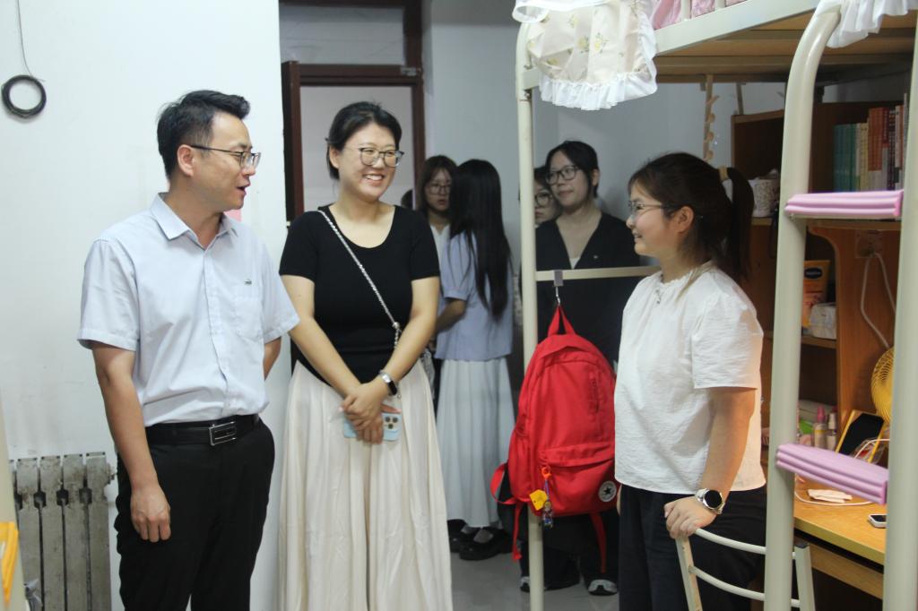9月8日晚,人文学院党政领导干部和全体专职辅导员深入人文学院新生宿舍,看望新生,传递学院的关怀与温暖。