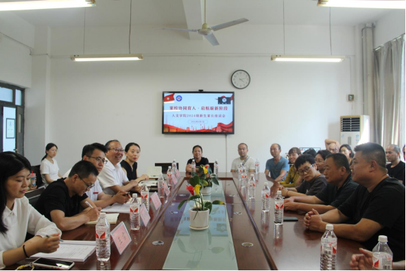 9月7日下午,人文学院在博识楼1318会议室召开2024级新生家长座谈会,学院党政领导、专任课教师、2024级新生辅导员及20余名新生家长参加,会议由院长赵前明主持。