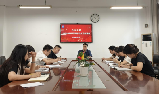 9月4日下午,人文学院在博识楼1318会议室召开2024秋季学期辅导员例会暨迎新工作部署会,全体专职辅导员参加,党总支副书记王昱主持会议。