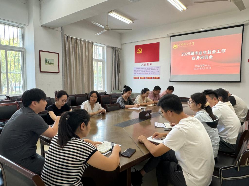 9月12日上午,学生工作部(处)就业指导中心开展2025届毕业生就业工作业务培训会。学生工作处副处长马耀斌、就业指导中心李欣及各二级学院就业工作专干参加会议。会议由就业指导中心主任王哲主持。
