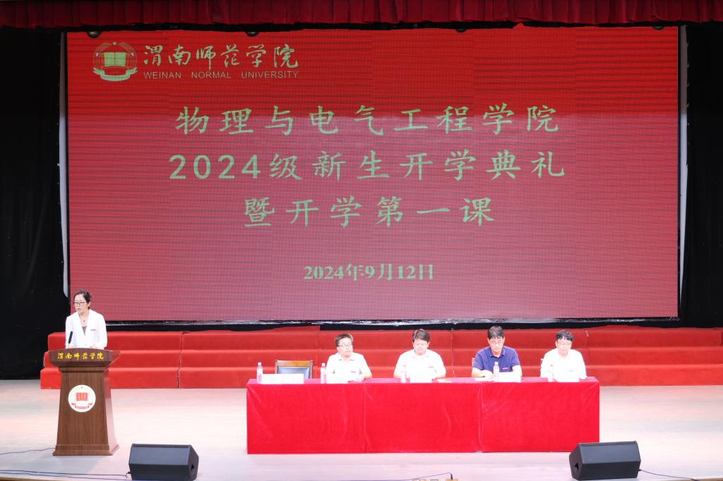 9月12日,物理与电气工程学院举行2024级新生开学典礼暨开学第一课。学院党总支书记袁卫、院长张修兴、副书记权轻舟、副院长郭宝会、何冰、2024级新生班主任、新生辅导员以及全体新生参加会议。会议由权轻舟主持。