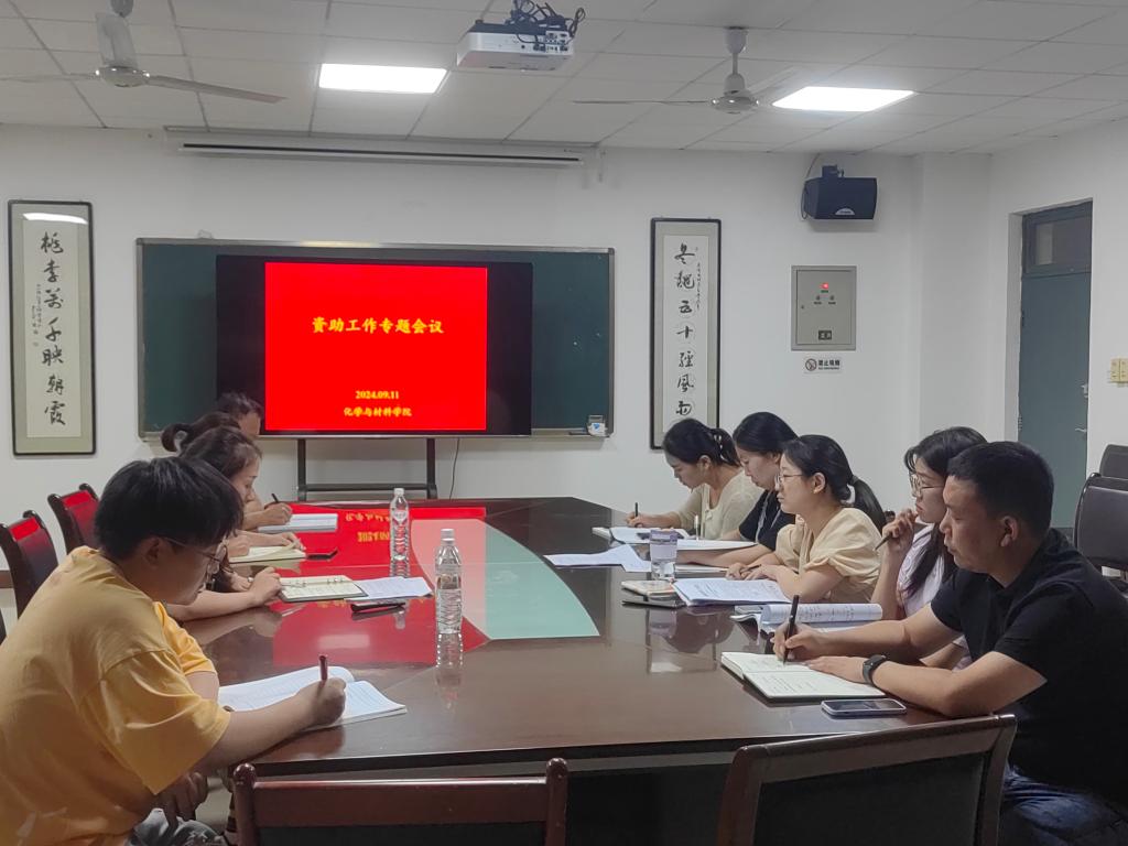 9月11日下午,化学与材料学院召开资助工作专题会议。党总支书记韩城忠、党总支副书记刘娟宁、学生工作办公室副主任雷岩、资助专干任新艺以及全体辅导员参加会议。