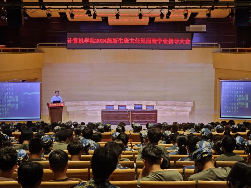 9月13日晚,计算机学院召开了2024级新生班主任见面暨学业指导大会。此次会议由计算机学院副院长哈渭涛主持,学工办主任李雷玮、2024级辅导员张雪轲、杨亦帆、范耿瑞以及全体2024级新生班主任的老师共同参与。