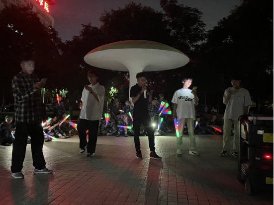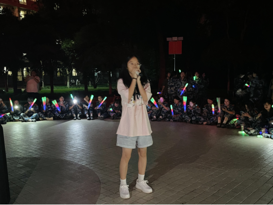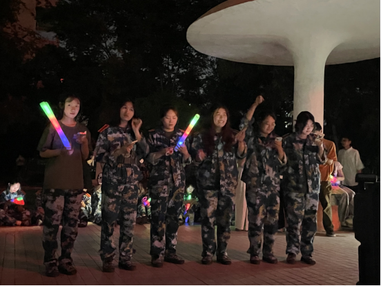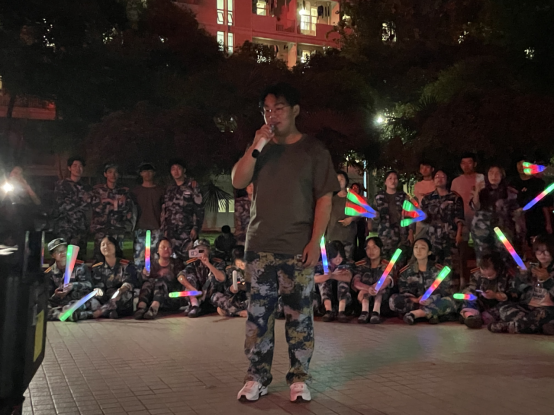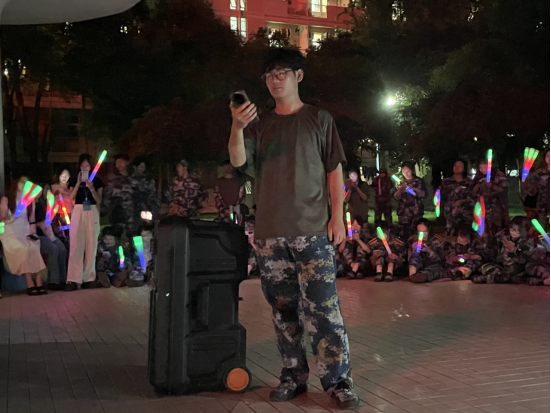 随着夜幕的降临,草坪音乐广场上的绿茵草地被灯光点缀得如梦如幻,主持人以亲切自然的风格引领全场,音乐节在欢快的旋律中拉开帷幕。杨黎艳同学的开场歌曲点燃了现场的热情,新生们随之挥动荧光棒,同学们在荧光棒的闪烁中感受到了中秋佳节的团圆与温馨。