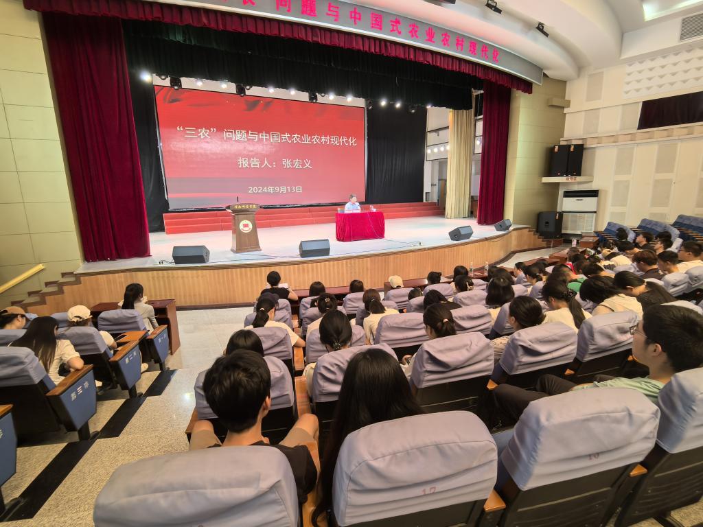 为深入学习贯彻党的二十届三中全会精神,加强师生对当前农业农村经济改革的深入了解,9月13日上午,经济与管理学院诚邀渭南市农业农村局副局长张宏义在陶然楼演艺厅为我院学生作《“三农”问题与中国式农业农村现代化》报告分享会。会议由经济与管理学院院长袁梁主持。