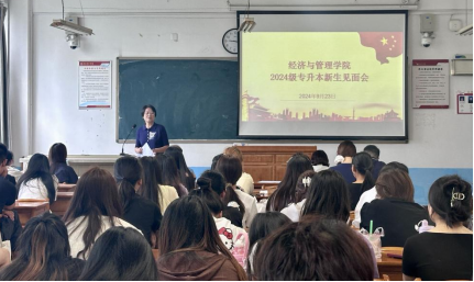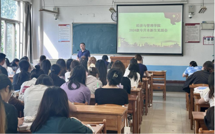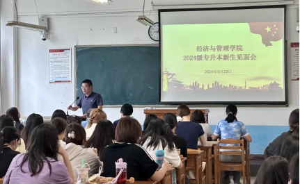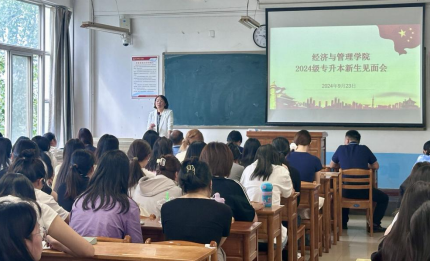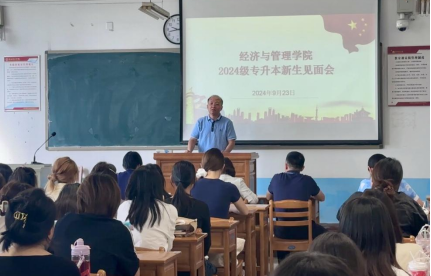 9月23日上午,经济与管理学院举行2024级专升本新生见面会。院党总支书记李富荣、院长袁梁、副院长石党英、副院长王留鑫、学工办副主任朱玉娜,辅导员蔡佳宁及全体2024级专升本新生参加,会议由党总支副书记谢稷光主持。