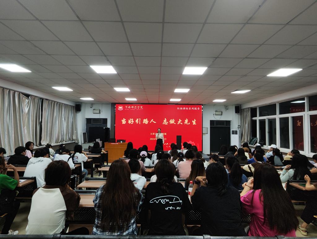 9月25日,陕西省教学能手、陕西省思政课骨干教师、陕西省思政课大练兵评委、渭南高级中学教研室副主任赵亚妮应马克思主义学院邀请做客红烛讲坛,在1101教室为2023级思想政治教育专业师范生作题为《当做引路人志做大先生》的报告。马克思主义学院院长张萍、副院长单剑峰、思想政治教育专业建设负责人和100余名学生参加。报告会由专业建设负责人周菊芳主持。
