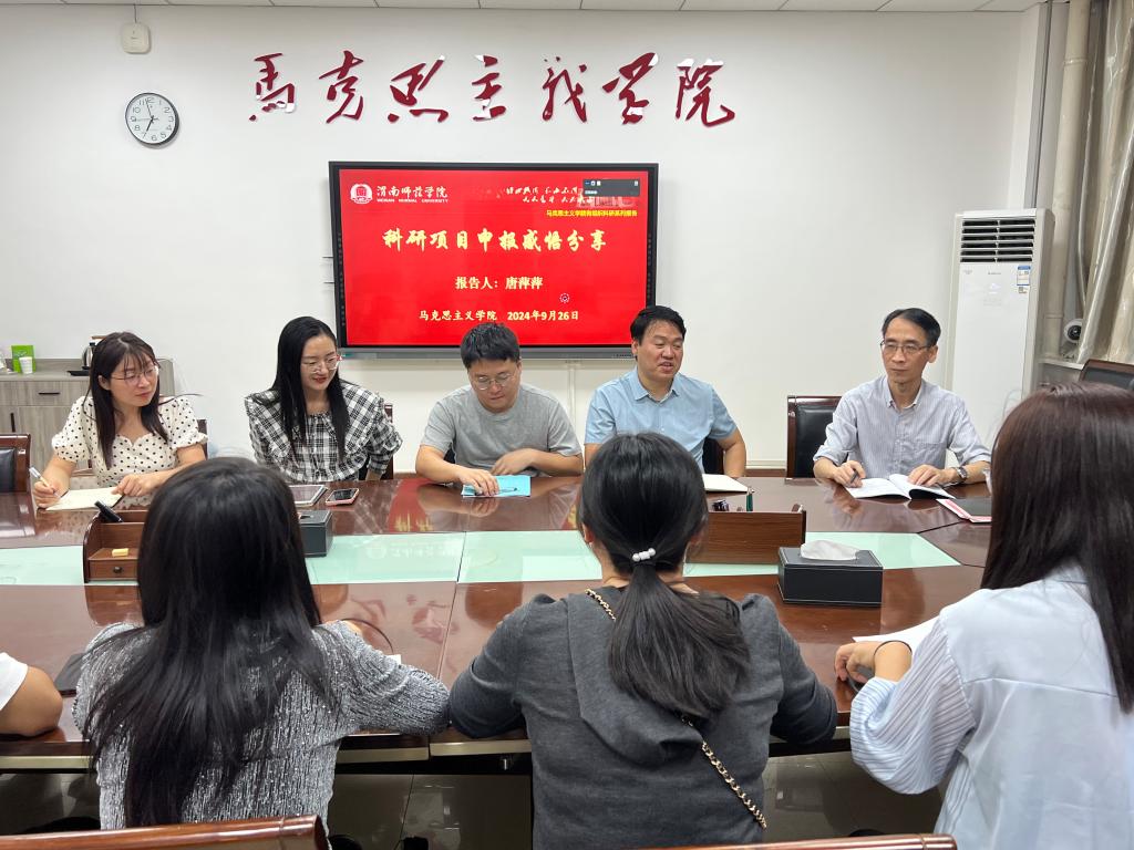 9月26日晚,马克思主义学院举办高级别项目申报动员与辅导报告会。院长张萍和部分骨干教师参加,副院长单剑峰主持。