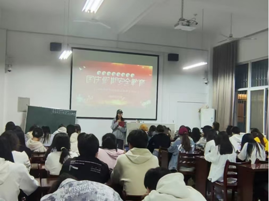 随后,辅导员以班为单位召开“国庆假期安全教育”主题班会,会上,辅导员强调了安全出行的重要性,要求学生拒绝乘坐无牌、无证、超载车辆及非法运营车辆,谨防交通事故和人身财产意外伤害事故的发生。并向大家讲解了帮信罪、掩隐罪、反电信网络诈骗法、青少年网络犯罪和文明上网等,指导同学们如何依法、礼貌、尊重、理性地使用网络,如何防骗、守护好自己的两卡从而更好地保护自己。警示学生不要被不法分子的“糖衣炮弹”所迷惑,时刻保护好个人信息,提高自身防范意识,谨防成为不法分子的“帮凶”。同时要遵纪守法,信贷安全,文明上网,不造谣、不信谣、不传谣,遵守公共场所规章制度,树立和践行社会公德意识,注重语言和行为文明。假期在校的同学要严格遵守学校各项管理规定,服从学校的管理,禁止夜不归宿和留宿校外人员,提高安全意识,合理安排假期生活。