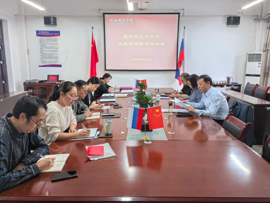 9月30日上午,莫斯科艺术学院党总支召开第9次理论学习中心组会议暨党纪学习教育总结会,校党委委员、副校长王菊霞巡听指导,学院处科级干部、党支部委员参会。会议由党总支书记孟波主持。