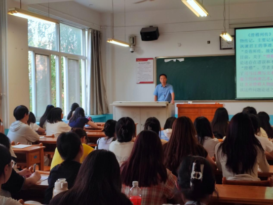韩团结首先介绍了《滑稽列传》的基本内容,分析了《滑稽列传》的研究现状,并指出不足之处。接着,他从文字学、音韵学和训诂学的角度分析了“滑稽”一词的上古音和语义,着重从写作手法、结构安排和语言运用三个方面论述了司马迁在撰写《滑稽列传》时展现出的“滑稽”特点。最后,他详细阐释了“滑稽”人物的讽谏艺术,提出了司马迁著录“滑稽”人物的四条标准,用丰富的史料和深入浅出的语言使在场的学生加深了对《滑稽列传》的理解。
