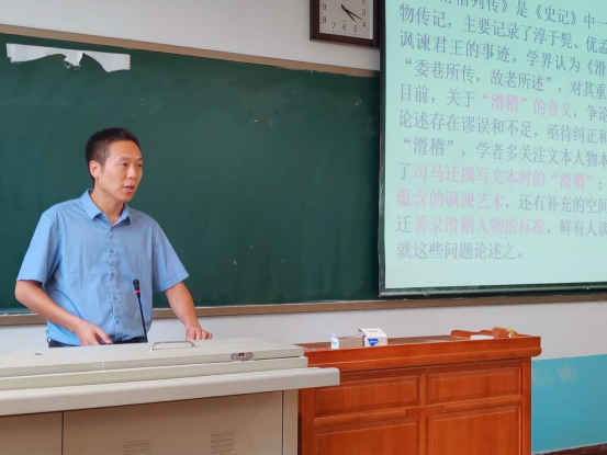 9月27日下午,中文系青年教师韩团结博士“论《史记·滑稽列传》中的滑稽”学术讲座在博识楼1317教室举行。2023级汉语言文学专业100余名学生参加了讲座。讲座由中文系主任方科平副教授主持。