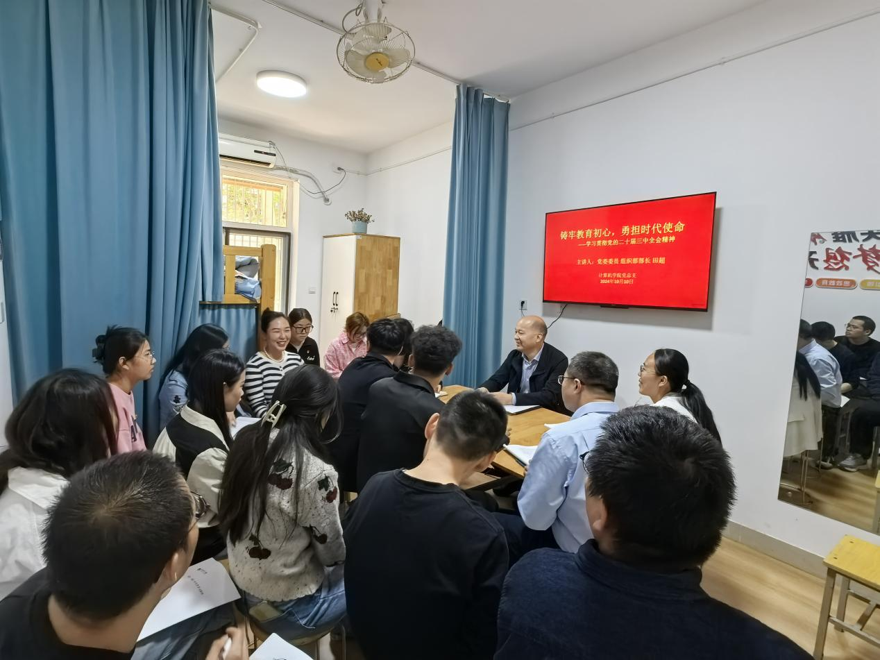 田超紧紧围绕深刻认识和理解把握党的二十届三中全会的主题、深入学习领会习近平总书记在党的二十届三中全会上的重要讲话精神、全面准确理解《决定》提出的进一步全面深化改革重大举措、全力以赴抓好全会精神贯彻落实等四个方面,结合生动的事例,对党的二十届三中全会精神进行了系统梳理和深入阐释,推动了党的二十届三中全会精神深入人心,确保了党的创新理论在基层中生根发芽。结合计算机学院的实际情况,他就如何将全会精神落实到学院的教育教学、学科科研和人才培养工作中提出了具体要求。
