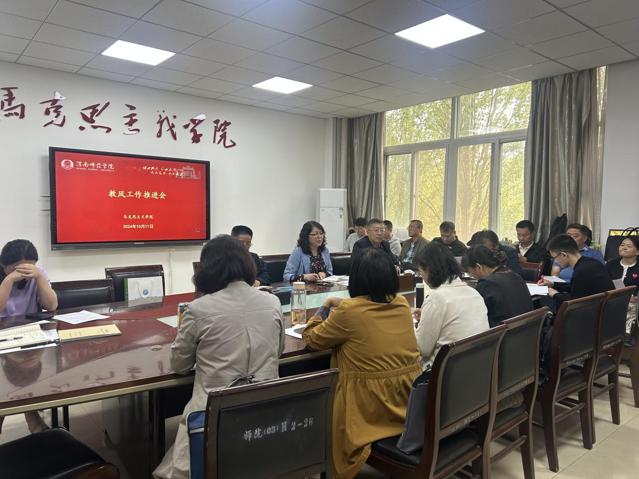 为进一步加强马克思主义学院教风建设工作,扎实推进学院高质量发展,10月11日下午,马克思主义召开教风建设推进会。马克思主义学院全体教师参加会议。会议由党总支副书记肖飞主持。