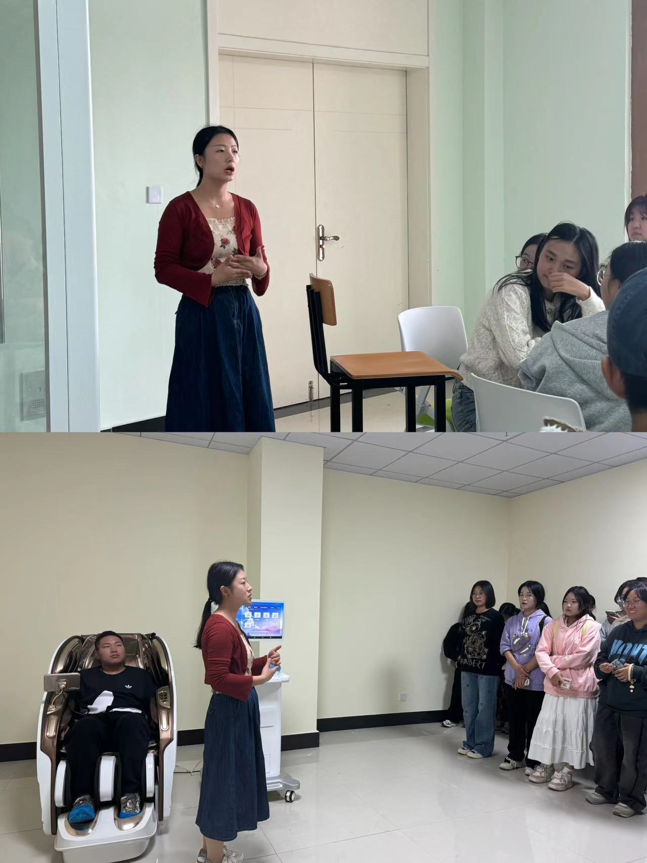 10月10日下午,传媒学院组织2024级新生参观富平校区大学生心理健康教育指导中心。大学生心理健康教育指导中心专职教师谭凤娥向新生介绍了团体活动室、多功能放松室、沙盘游戏室、个体心理咨询室、团体心理咨询室等多个功能室,并向新生普及了心理健康和精神卫生知识。