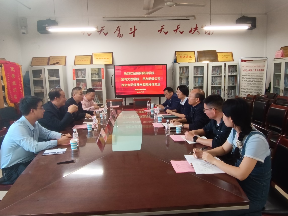 10月15日下午,经济与管理学院邀请咸阳师范学院副校长姚波(兼任经济与管理学院院长)、宝鸡文理学院经济与管理学院院长刘辉、用友新道科技股份有限公司经理贾胜康等一行在1518会议室共商教育新篇章,旨在推动学校、政府、企业、科研和服务地方发展的深度融合。经济与管理学院党总支书记李富荣、院长袁梁、副书记谢稷光、副院长王留鑫、办公室副主任代杨、教师代表张斌参加了此次会议,会议由李富荣主持。