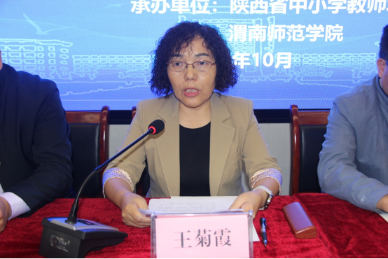 王菊霞代表学校致欢迎辞,她对学校的基本情况及在教师培训方面取得的成绩作了简要介绍,强调高中教育在人才培养中起着承上启下的关键作用,新高考、新教材、新课程的实施,对教师教育观念更新和教学转型提出了新的挑战,如何不断更新教学观念,使学校的教育教学管理工作步入更合理、更高效的层次,是教务主任需要不断思考、解决的问题。她希望各位老师以教育家精神为价值追求,以学为人师、行为世范为行动指引,与专家深入探讨、与同学相互学习,努力成为陕西高中教育教学改革发展的推动者、引领者。