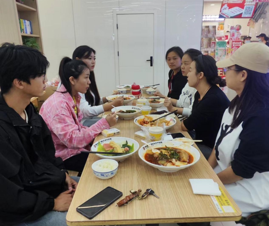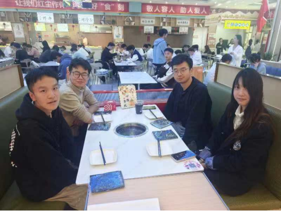 就餐过程中,辅导员和同学们深入交谈,全方位了解学生学习、生活、思想动态、职业规划等情况。就学生比较关注的学习、心理、情感等话题与学生全方位、多层次的交流沟通,对学生进行针对性指导,鼓励学生永葆“三气”,争做有理想、有担当、肯奋斗的新时代好青年,珍惜大学时光,提高自身综合素质,发挥自身核心竞争力,积极投身于校园文化建设中,充分实现个人价值。