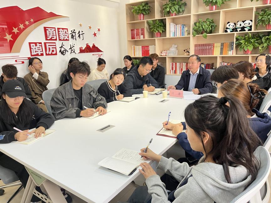 10月16日,校党委副书记汪勇在“一站式”学生社区为公寓楼团组织团干部们带来了一堂深刻而生动的思政课。活动由校团委副书记潘涛主持。
