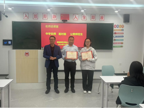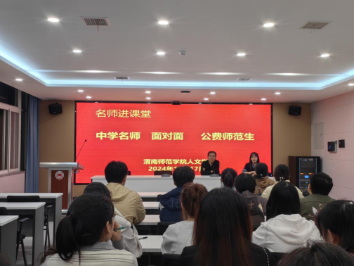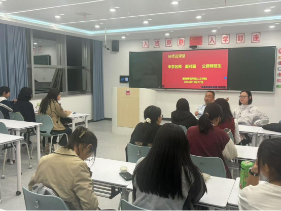 10月17日晚,人文学院举办“名师进课堂•中学名师面对面公费师范生”交流座谈活动,邀请4位中学教学一线的名师分别与2023级、2024级汉语言文学专业公费师范生进行面对面交流,名师们围绕教育家精神、师范生教育情怀、师范生素质和技能养成以及名师成长的心路历程等主题,旨在帮助同学们更深入地了解中学教育现状,明确未来职业方向,提升教育教学能力。