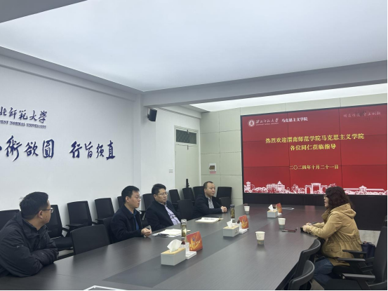 10月21日,马克思主义学院院长张萍一行赴西北师范大学马克思主义学院进行高层次人才招聘宣讲。西北师范大学马克思主义学院副院长周方、王树亮和即将毕业的博士研究生共同出席会议。