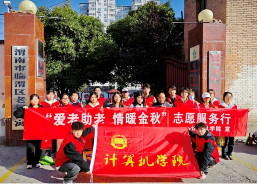 10月23日,计算机学院志愿者前往渭南市临渭区老年公寓,开展关爱老人志愿服务活动,丰富老年人精神文化生活,为老人们送上亲切的问候和关怀。