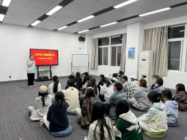 10月22日晚,人文学院18余名新生代表在该院心理专干孙丽诗带领下参观体验心理健康教育与咨询中心。