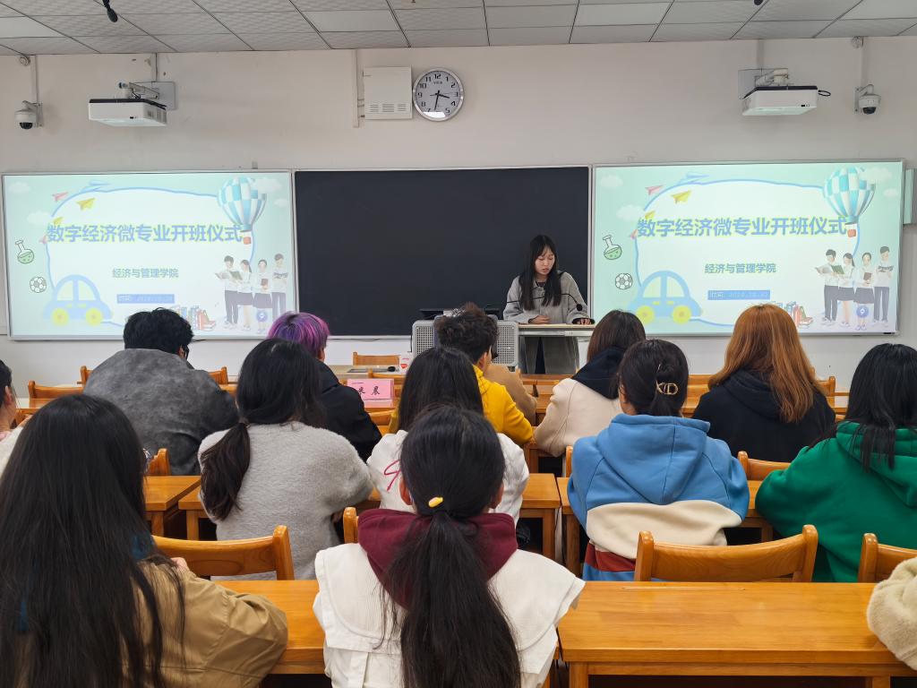 据悉,经济与管理学院经过多方论证,2024年申报数字经济微专业并获得学校批准,学院制定了科学的人才培养方案和详细的教学计划,本次数字经济微专业班29名同学本周开始上课。经济与管理学院一直重视专业发展和人才培养,积极创新,大胆探索高质量复合型经管人才培养模式,不断提高人才培养质量。(通讯员 米晨 石党英 审核人 袁梁)