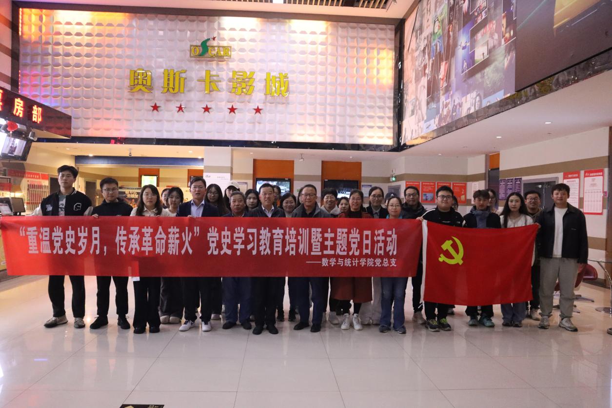 10月30日晚7点,数学与统计学院党总支组织开展了“重温党史岁月,传承革命薪火”党史学习教育培训暨主题党日活动,学院全体师生党员、教职员工、公费师范生班学生等150余人在天泓奥斯卡影城参加学习培训活动并观看爱国电影《志愿军:存亡之战》。学习培训活动由党总支书记武江波主持。