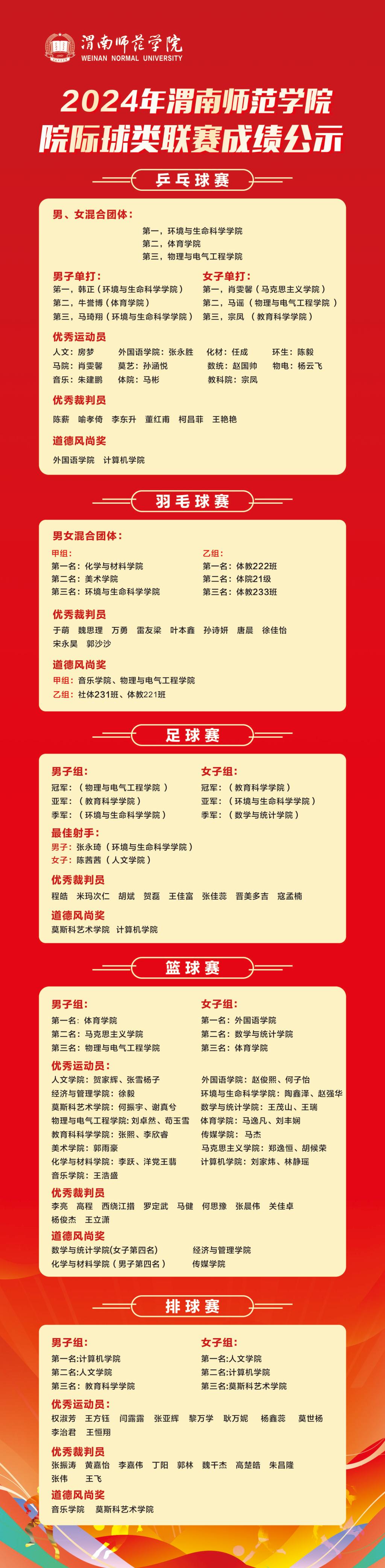 11月1日,学校2024年院际球类联赛圆满落幕,本次联赛历时近一个月,包含乒乓球、羽毛球、足球、篮球、排球五个项目,共有全校15个二级学院1600余名学生参与了本次比赛,展现出了best365学生的青春活力与竞技精神。