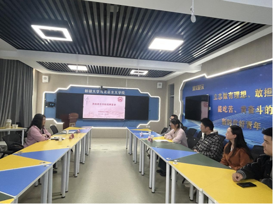 上午,前往新疆大学马克思主义学院调研学习,副院长张敏琪,学工办主任严丽文和申请毕业的博士研究生共同出席会议。